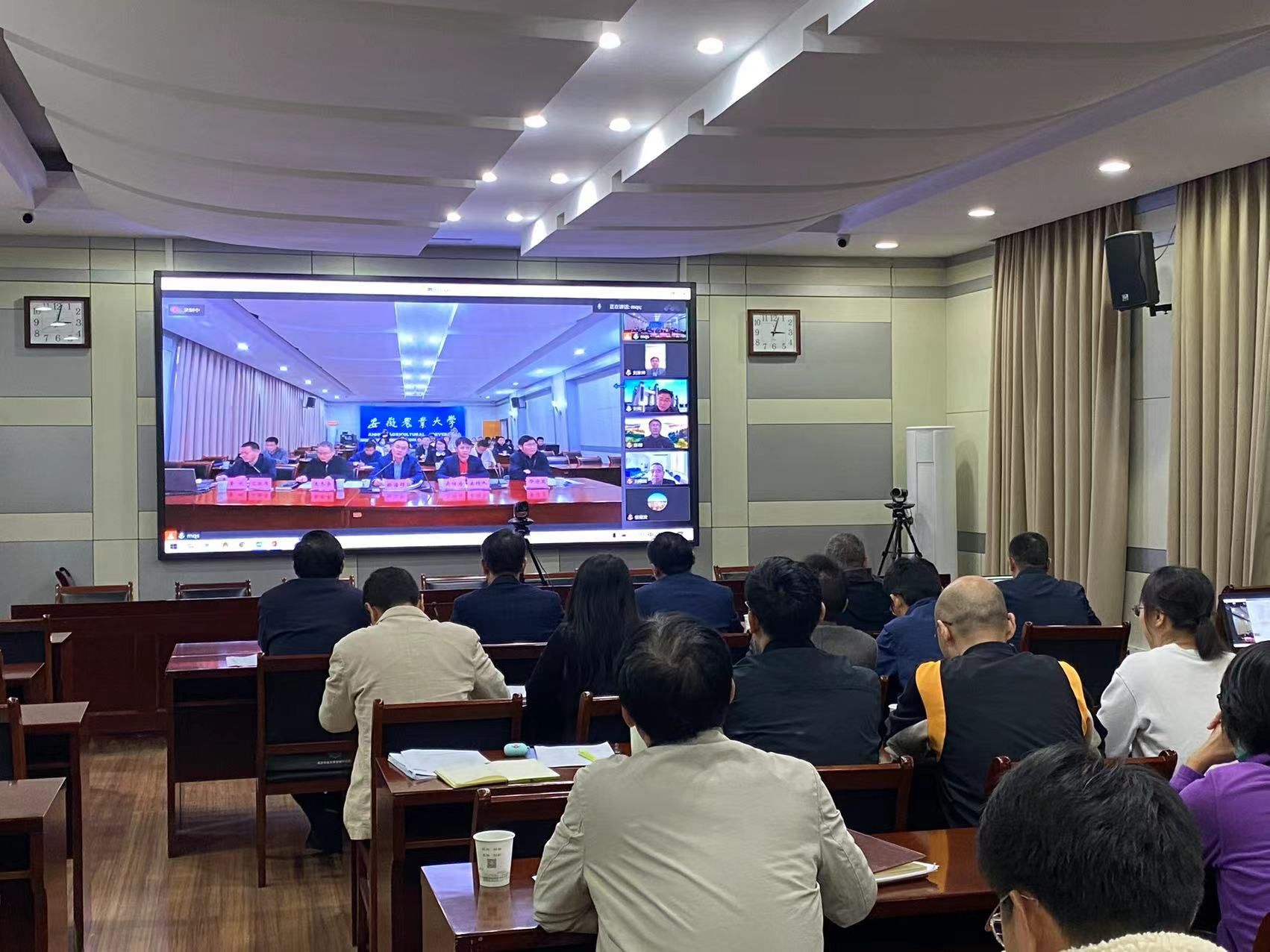 10月9日下午,我校召开申报安徽省新兴交叉高峰培育学科专家论证会。校党委常委、副校长操海群出席并致欢迎辞。中国工程院院士、国家农业信息化工程技术研究中心主任赵春江等9名校外专家受邀参加线上会议。发展规划处、理学院、资源与环境学院等学院负责人及师生参加了线下会议。会议由发展规划处处长吴祥为主持。