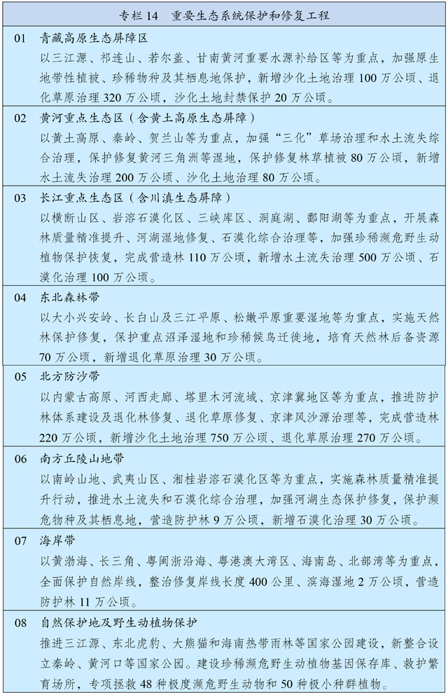 更好发挥国家发展规划战略导向作用,强化空间规划、专项规划、区域规划对本规划实施的支撑。按照本规划确定的国土空间开发保护要求和重点任务,制定实施国家级空间规划,为重大战略任务落地提供空间保障。聚焦本规划确定的战略重点和主要任务,在科技创新、数字经济、绿色生态、民生保障等领域,制定实施一批国家级重点专项规划,明确细化落实发展任务的时间表和路线图。根据本规划确定的区域发展战略任务,制定实施一批国家级区域规划实施方案。加强地方规划对本规划提出的发展战略、主要目标、重点任务、重大工程项目的贯彻落实。