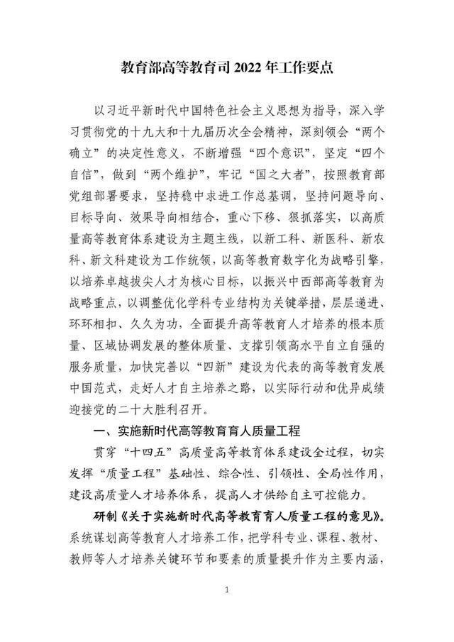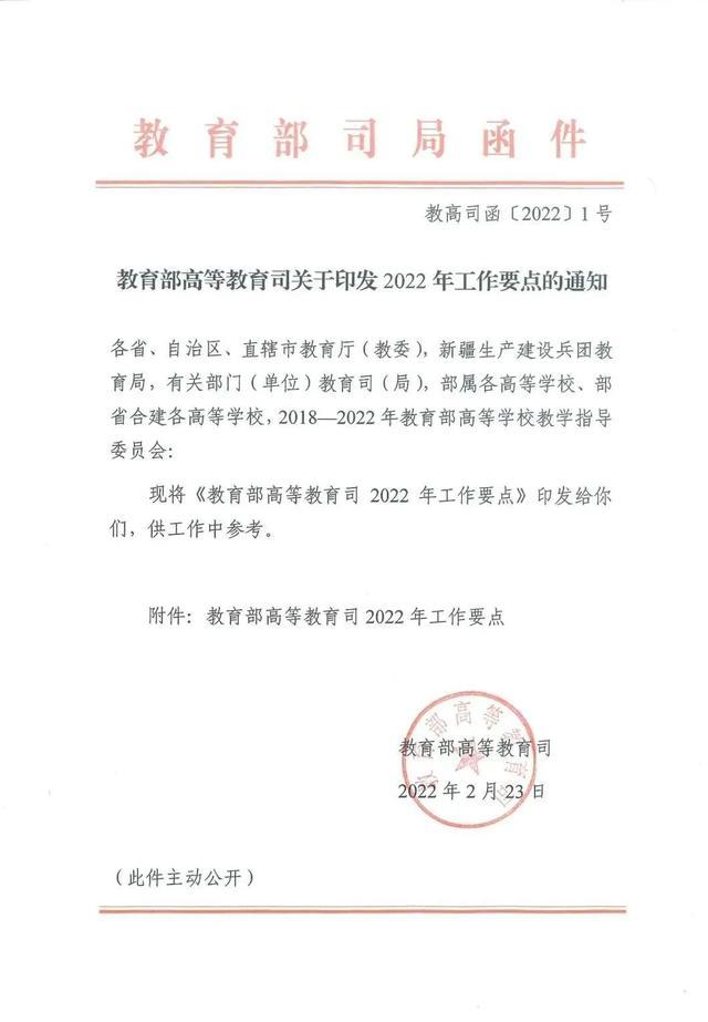 3月7日,教育部高等教育司印发2022年工作要点,一起来看详细内容。