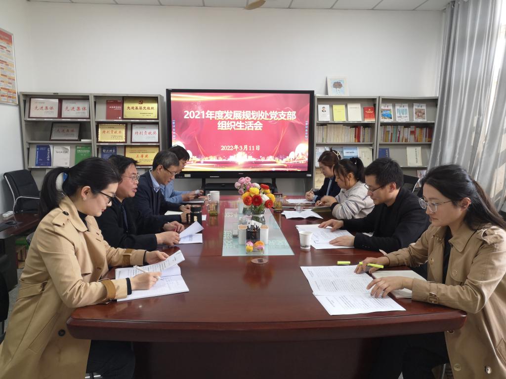 3月12日下午,发规处党支部在处会议室召开了2021年度组织生活会和民主评议党员大会。会议由支部书记方明主持,机关党委委员、国际合作交流处处长、国际教育学院院长孙裴到会指导,支部全体党员参加。