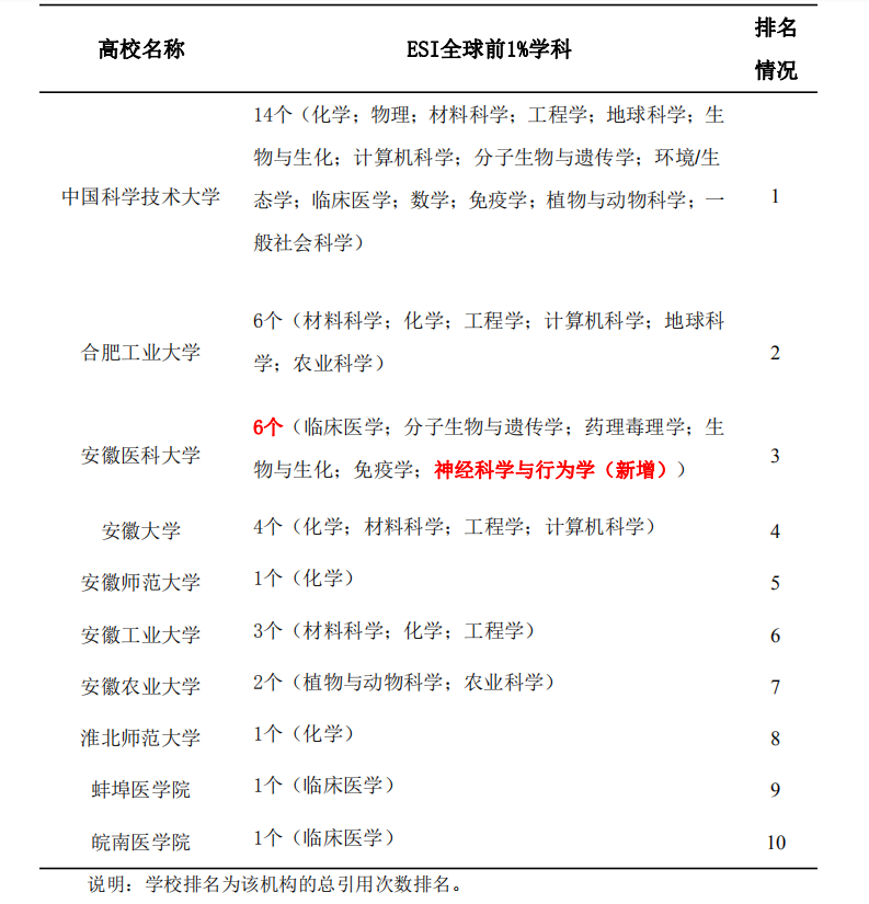 安徽高校进入ESI1%学科数据库情况(2020.07更新)